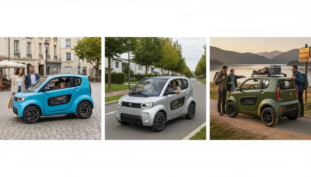 • VSP 2 places électrique : permis AM dès 14 ans, zéro émission, modèles comme la Citroën Ami (7 990 €) ou l’Aixam eCity, idéale pour les trajets solo quotidiens en ville